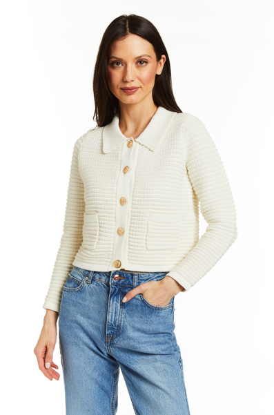 Creamy ivory sweater with a classy button down design. Great with your favorite denim!