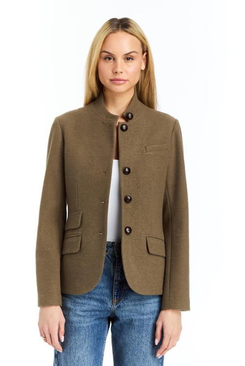 Stylish and fitted, this olive blazer coat is the perfect addition to your Fall wardrobe. Looks great with denim or dress pants.