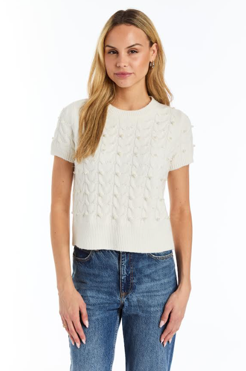 This short sleeved sweater is perfect solo or under your favorite blazer. Timeless style!