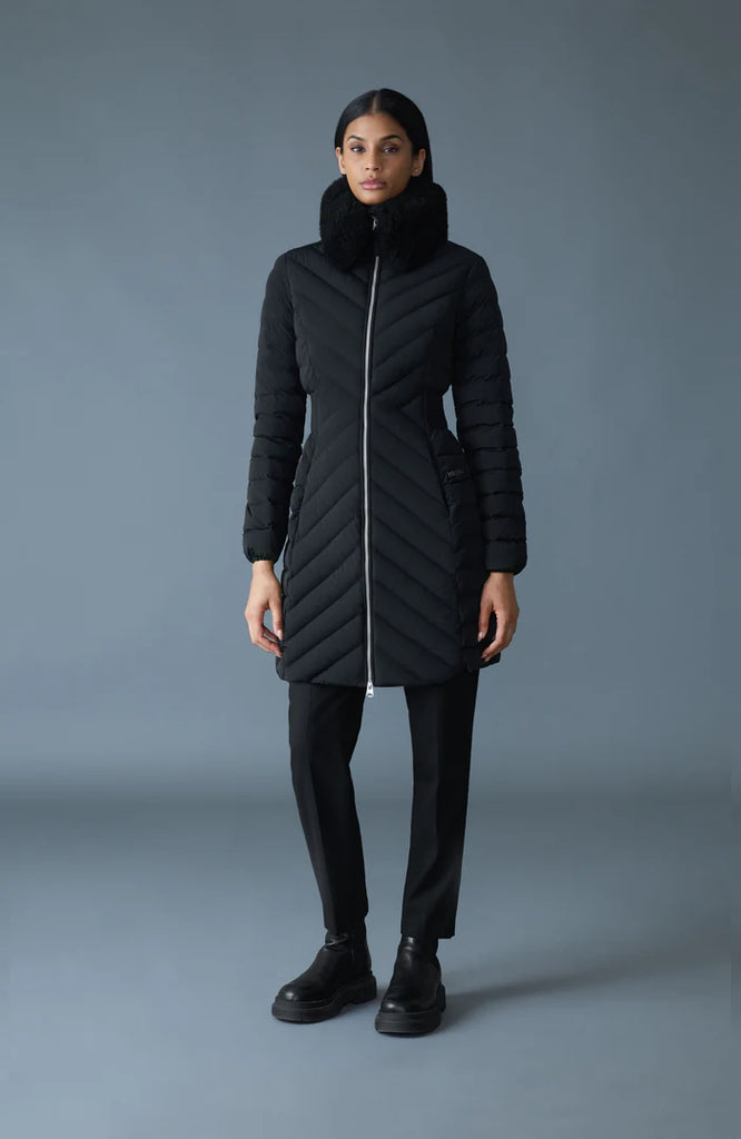 VIK is a fitted diamond quilted jacket crafted from a high-performance stretch shell. Engineered with GRS-certified recycled down, it delivers warmth without bulk. Functional details include an adjustable waist tab at the back with snaps, a stand collar, and elasticized cuffs for a snug fit. A sleek, versatile silhouette designed for transitional layering.