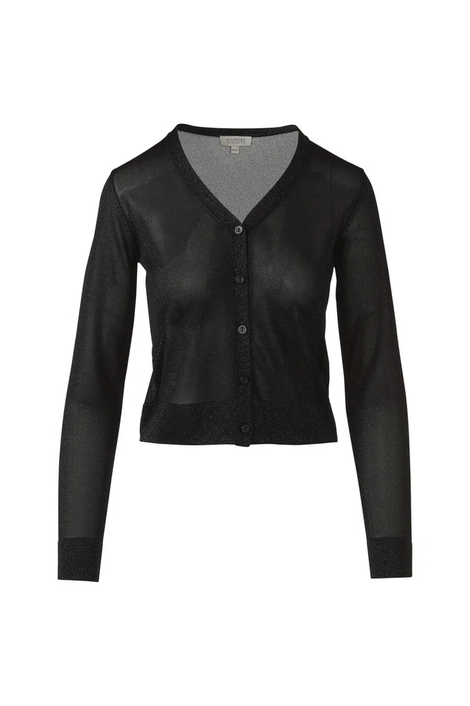 Shimmer Button V-Neck Cardigan, Black